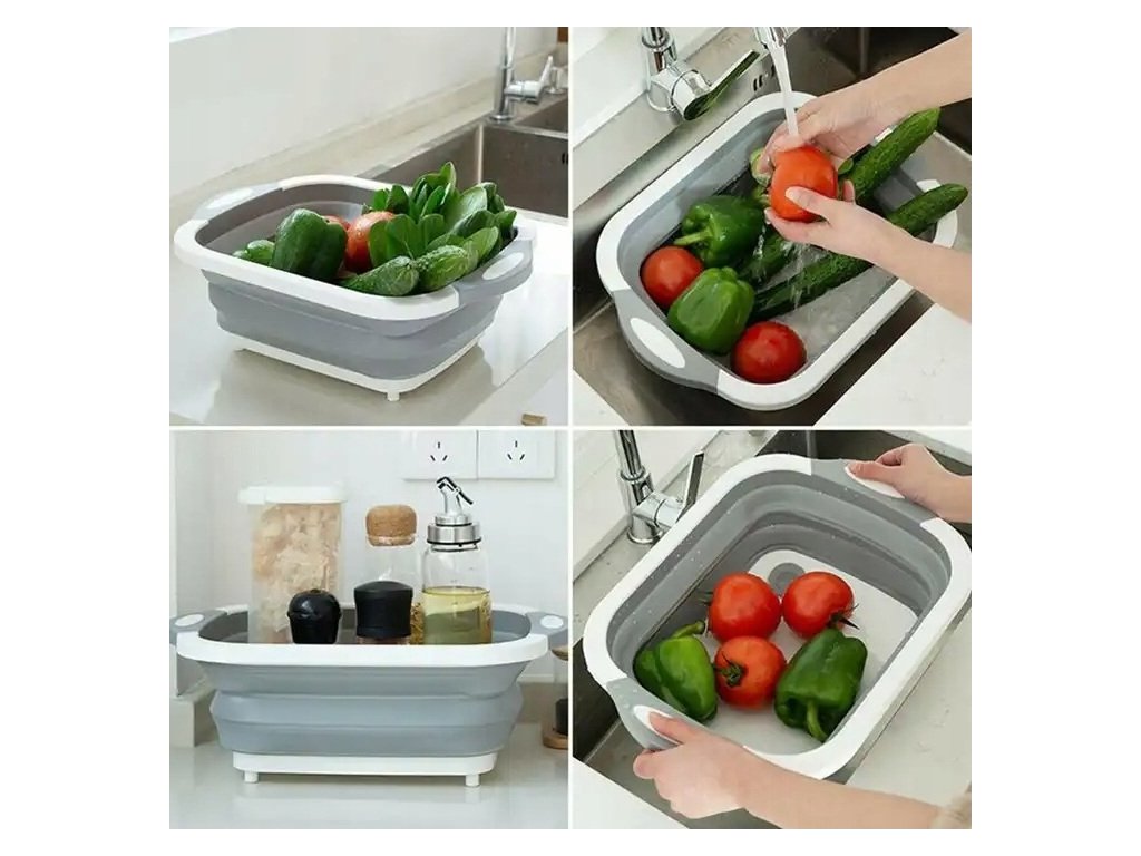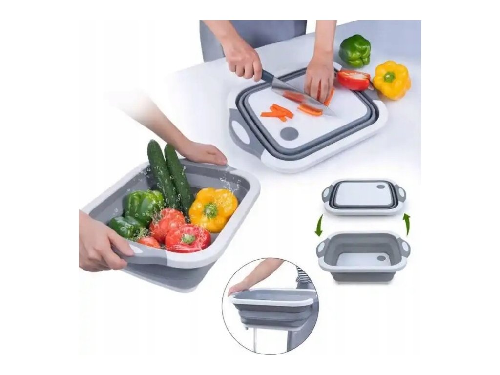 Miska skládací silikonová s odtokem 5L Rossner® nádoba a prkénko 2v1