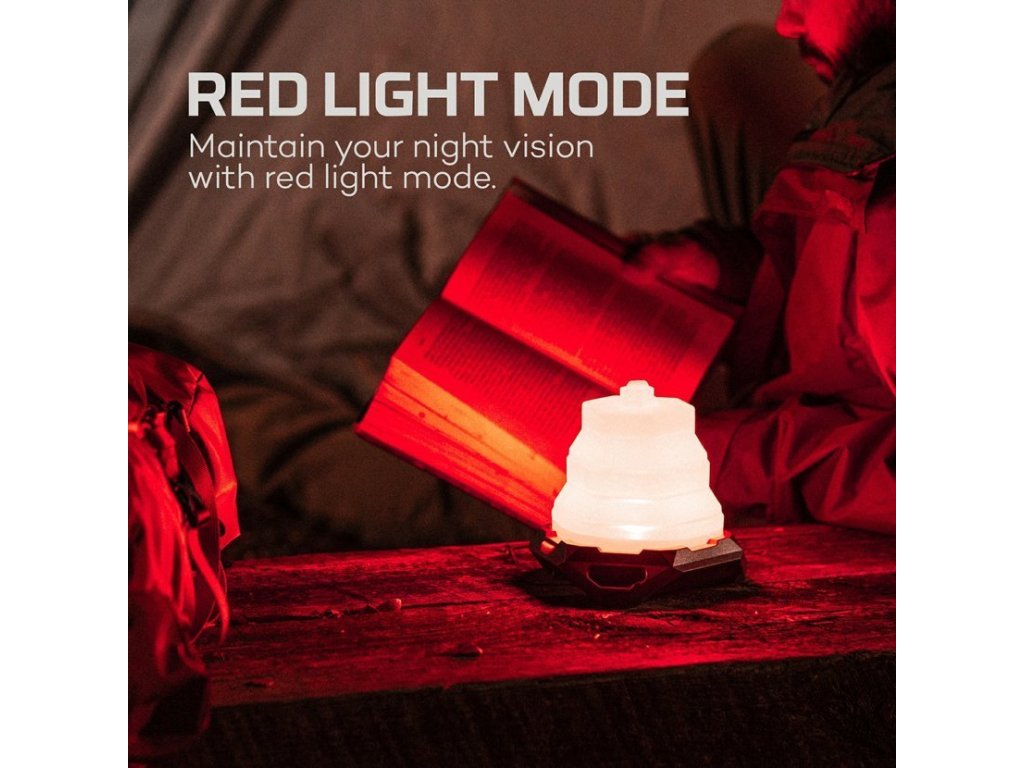 Teplé bílé světlo efektivně osvětlí jakýkoli prostor, zatímco možnost červeného světla pomáhá zachovat noční vidění za špatných světelných podmínek.