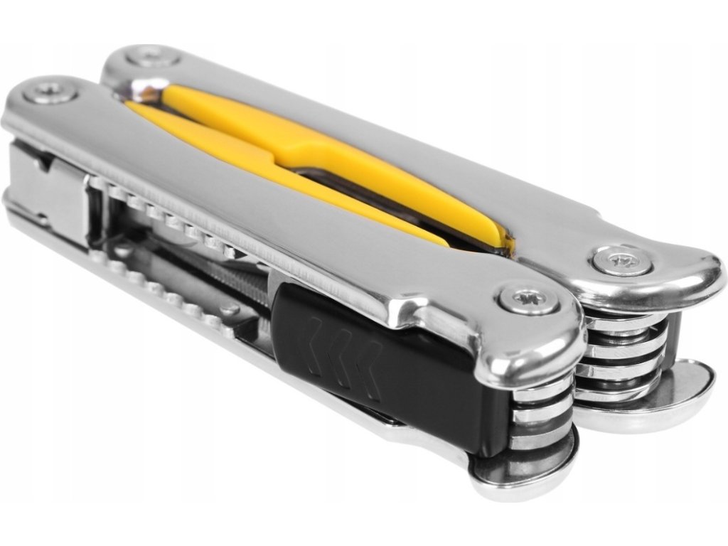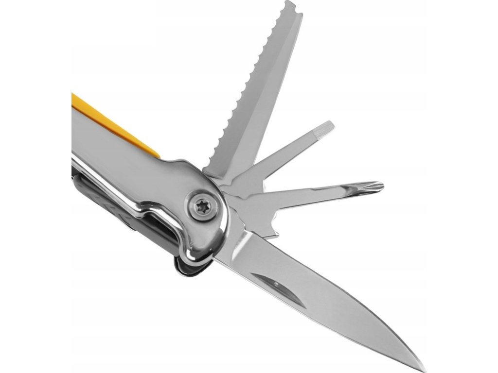 Multifunkční nářadí má dvě velikosti plochého šroubováku, křížového šroubováku a otvíráku na láhve s funkcí šroubováku. Sada nářadí obsahuje: kleště, pilku, nůž s hladkou čepelí, ostrý otvírák na konzervy a oboustranný pilník.