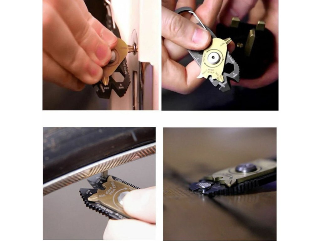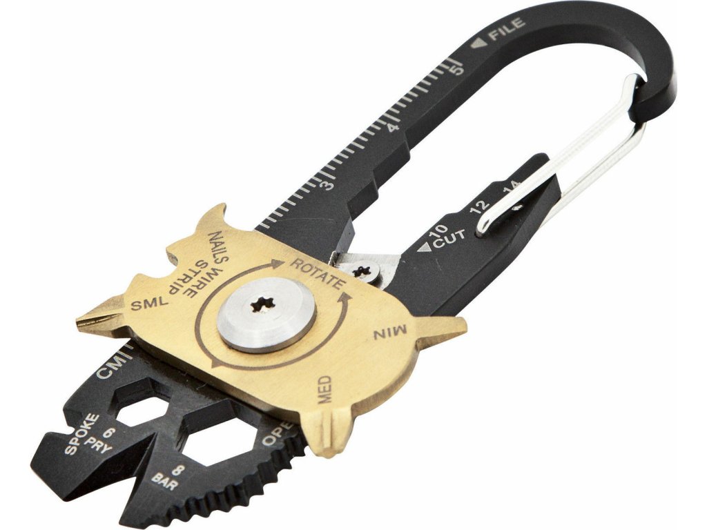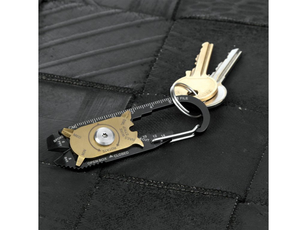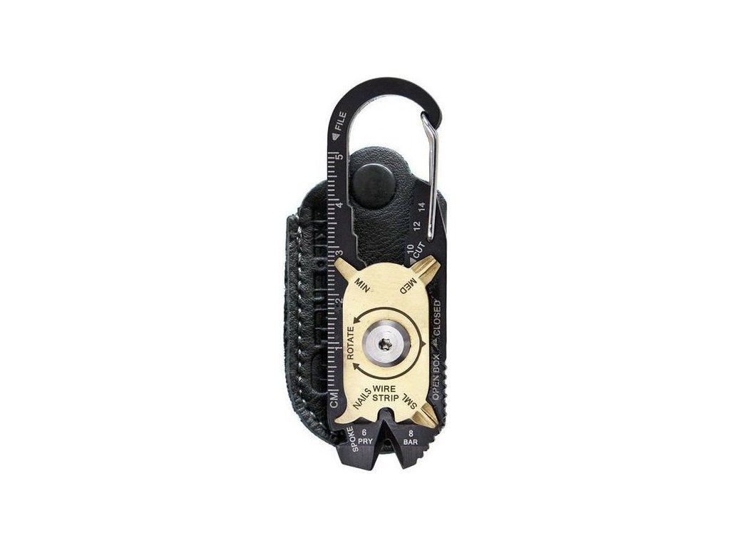 20 nástrojů v 1! Tento patentovaný nástroj se jednoduše připevní ke klíčům,batohu vestě atd. FIXR skrývá 20 klíčových nástrojů v koženém pouzdře. Vyrobeno z nerezové oceli potažené černým titanem, se zlatým titanem je potažen rotační disk. Systém FIXR vám poskytuje mimořádné množství základních nástrojů; včetně šroubováků a klíčů, špendlíku, pilníku, otvíračů lahví a dokonce i skrytého řezače dále nástroj pro odizolování kabelů.