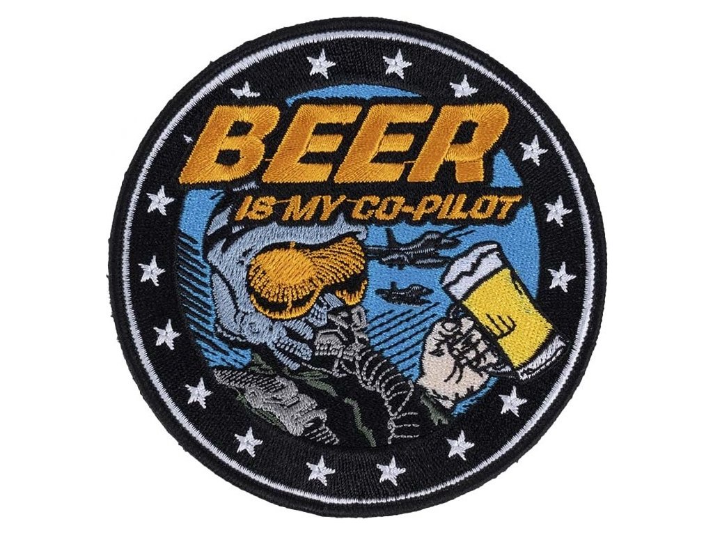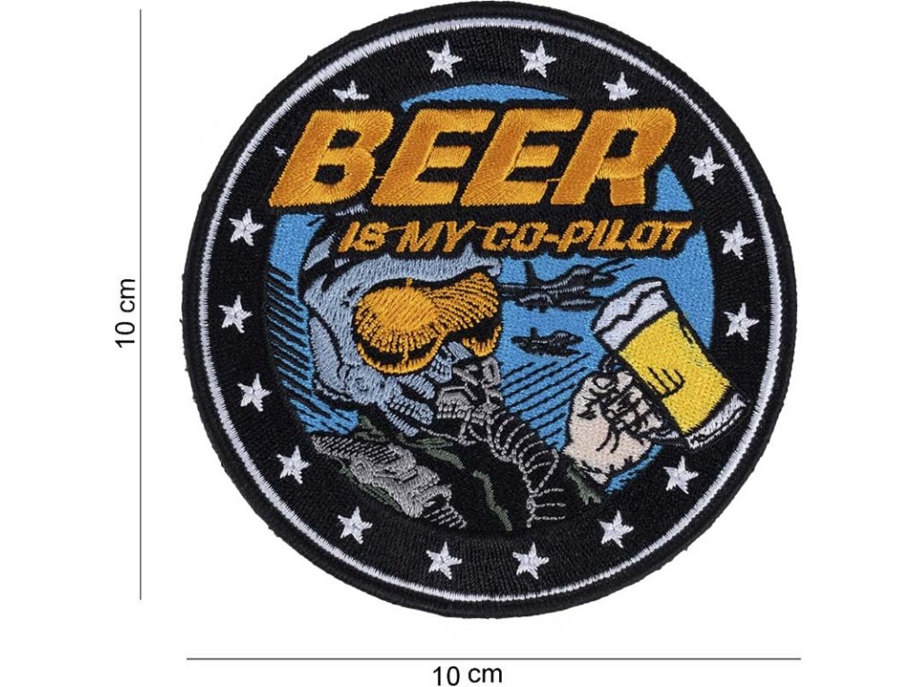 Nášivka kulatá vyšívaná na suchý zip Beer is my Co-pilot - Pivo je můj druhý pilot