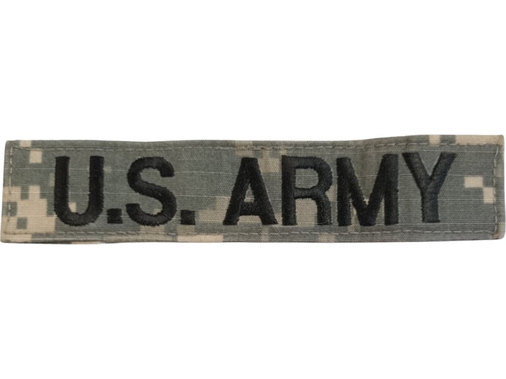 - Precisně vyšívaný text U.S. ARMY černou nití na podkladu digitální kamufláže.