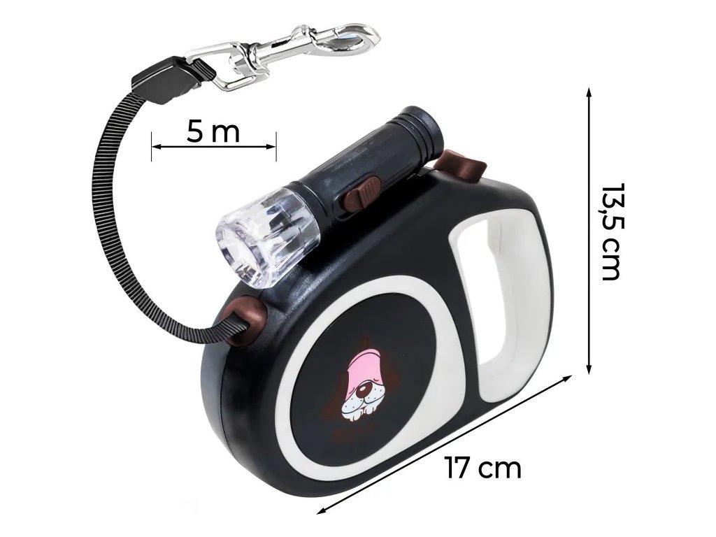 - Automatická šňůrka na psa / flexi vodítko 5 m se zámkem, LED svítilna/baterka.