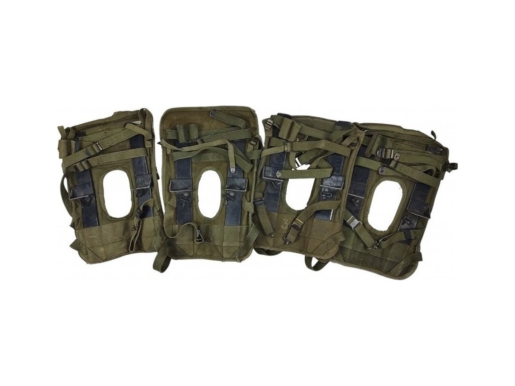 - Použité zboží (nosiče nesou stopy běžného opotřebení, lehké znečištění a oděrky, mírné deformace kovového hardwaru, vyřazené z armádních zásob).