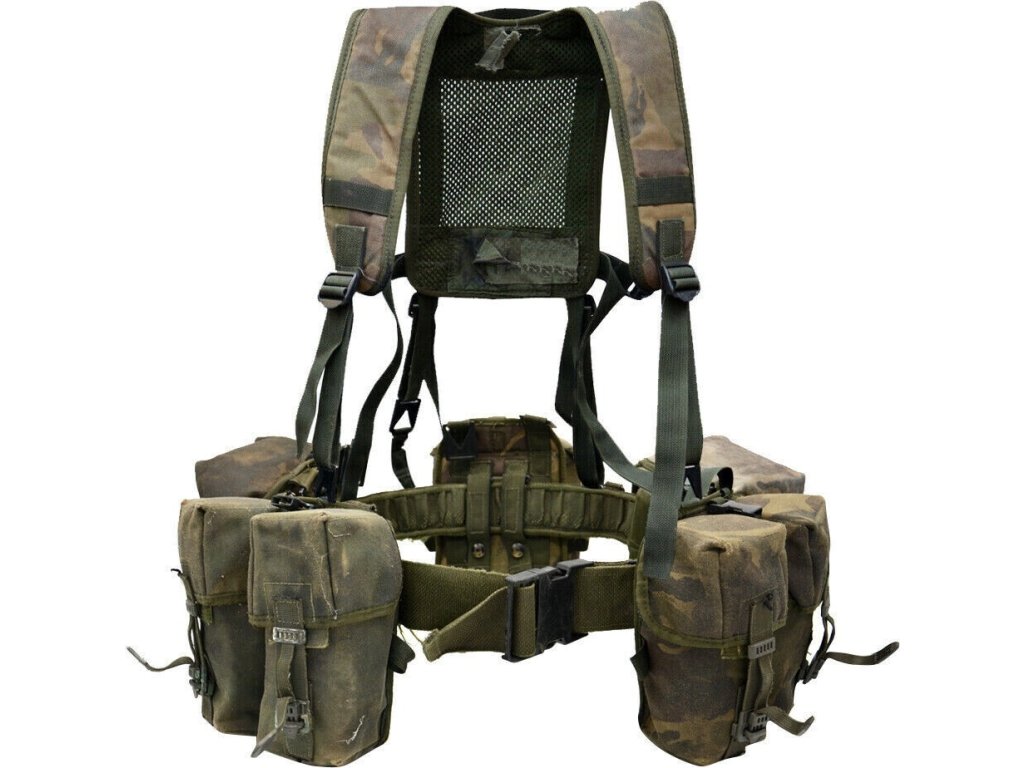 - Použité zboží (nosné systémy mají viditelné známky používání, podepsané a znečištěné, mírně vybledlá kamufláž, různé úpravy předchozího uživatele, různé počty kapes a doplňků, některé kusy mají navíc bederní polstrování, v provozuschopném stavu, vyřazené z armádních zásob, ilustrační fotografie).