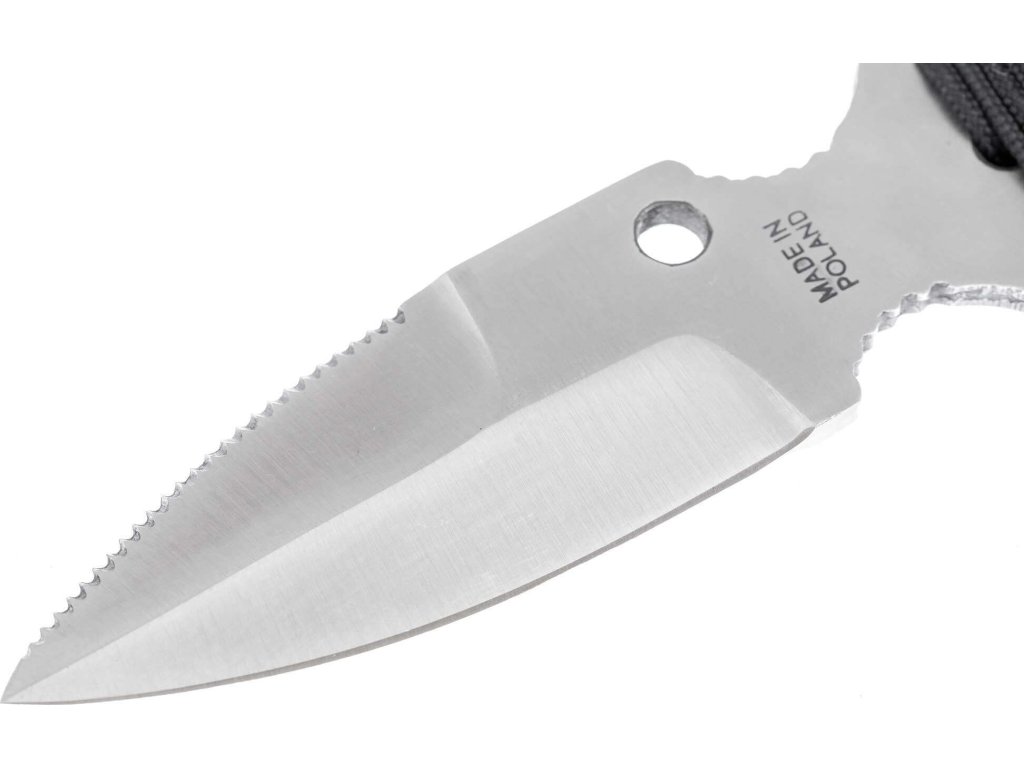 Konstrukce nože je mechanicky extrémně odolná . Malé rozměry nože a provedení pochvy vám umožní mít jej stále u sebe. Rukojeť je opletena černou šňůrkou. Po sejmutí šňůrky je možné použít nůž jako hrot kopí. Pochva nože je vyrobena z černé cordury. Zapínání na opasku zajišťuje kovová spona .