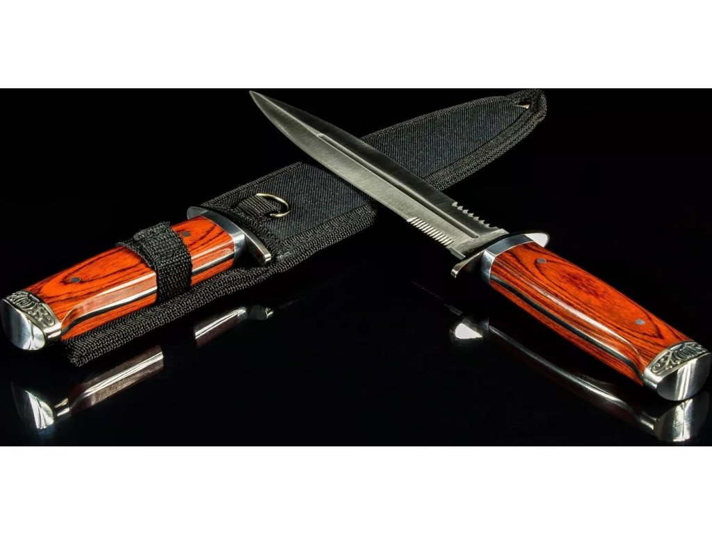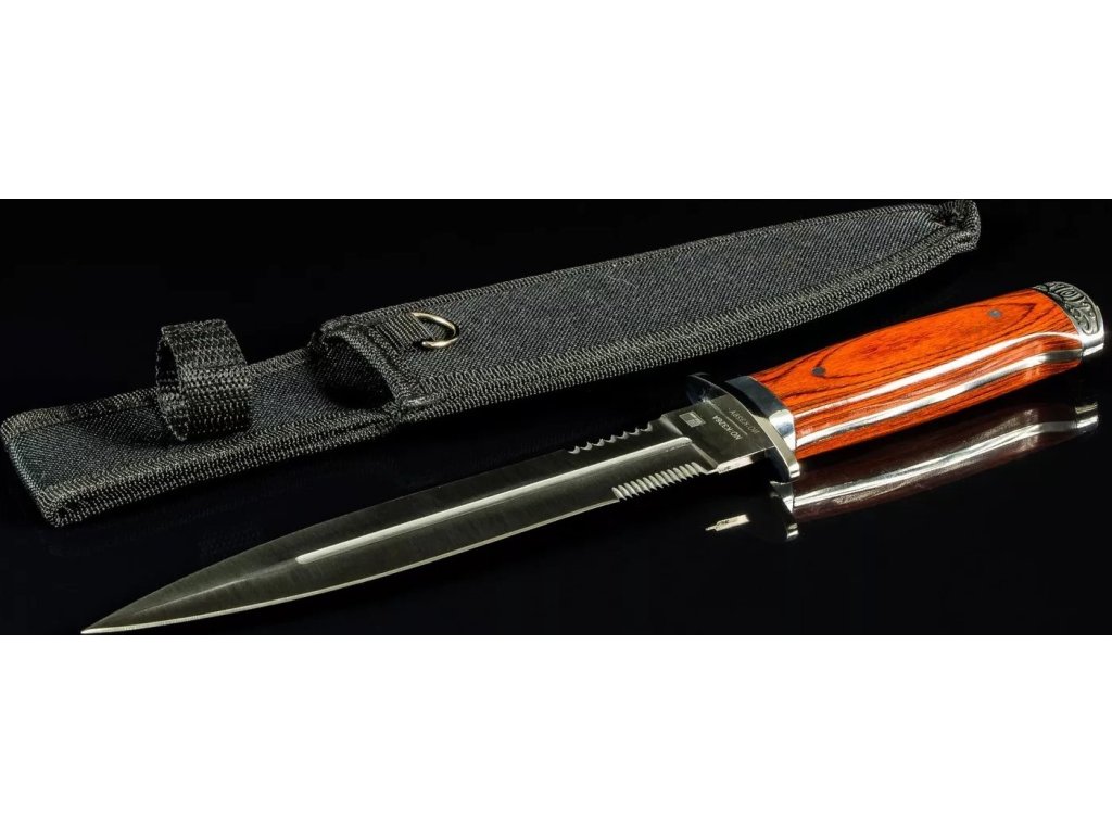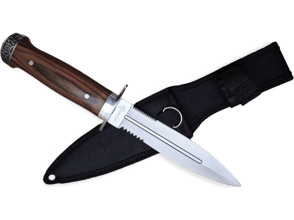 Použití oboustranné čepele určilo, že nůž se vyznačuje velmi dobrými řeznými vlastnostmi a vysokou průrazností. Pevná konstrukce s pevnou čepelí a skrytou konstrukcí tang, správně profilovaná rukojeť s dřevěným obložením a velká záštita zabraňující sklouznutí prstů po čepeli při používání.