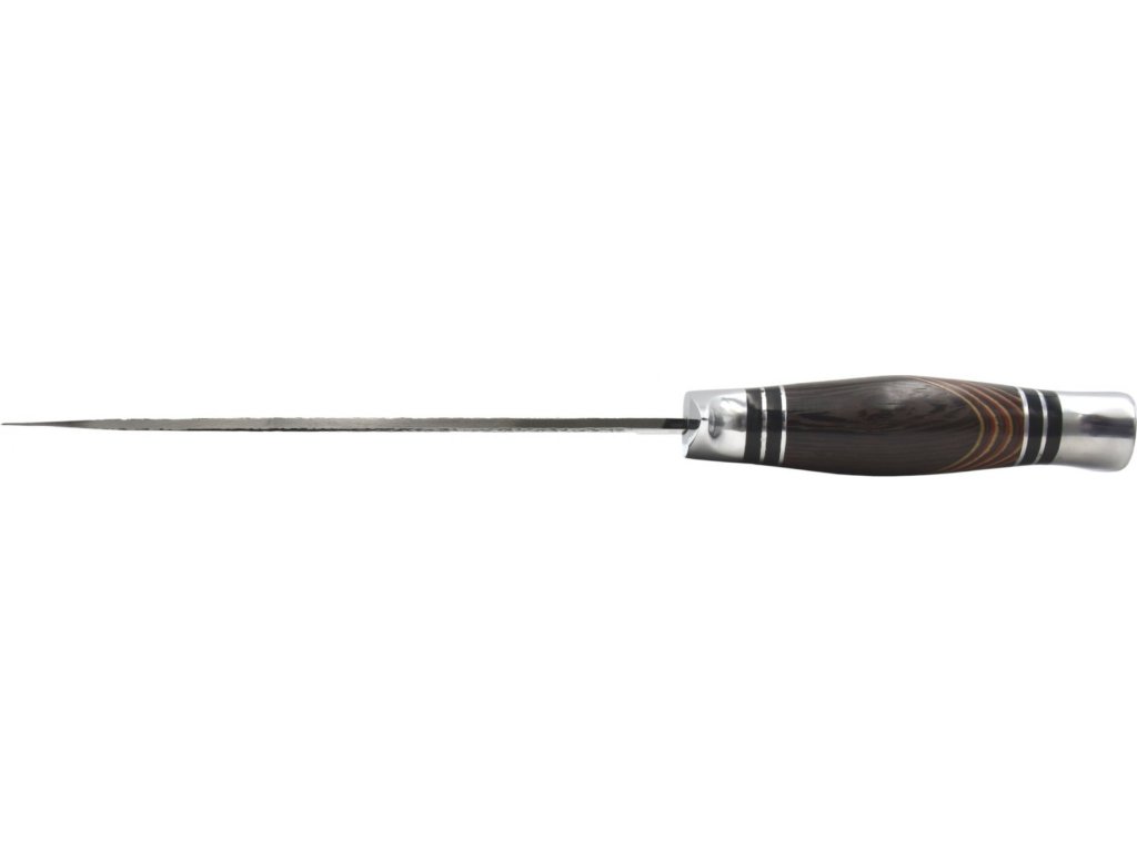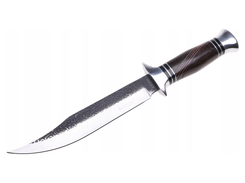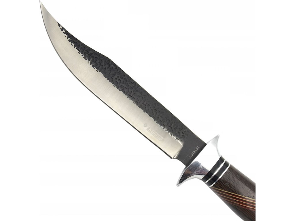 Tento velký lovecký nůž má úhlednou kónickou čepel 440C, nabroušenou do ostré hrany. Rukojeť je vyrobena z kombinovaného dřeva s kovovým zdobením. Základní kryt a chránič palce jsou do detailu propracované s designem vysokého lesku. Skvěle vypadající nůž do každé sbírky.