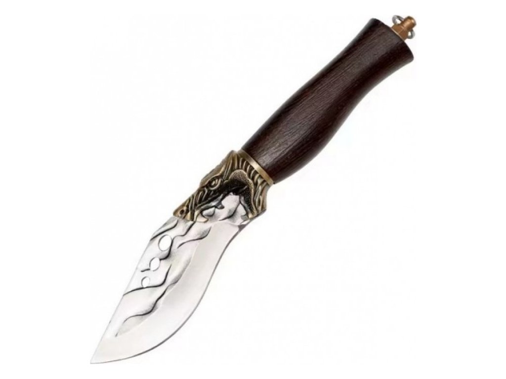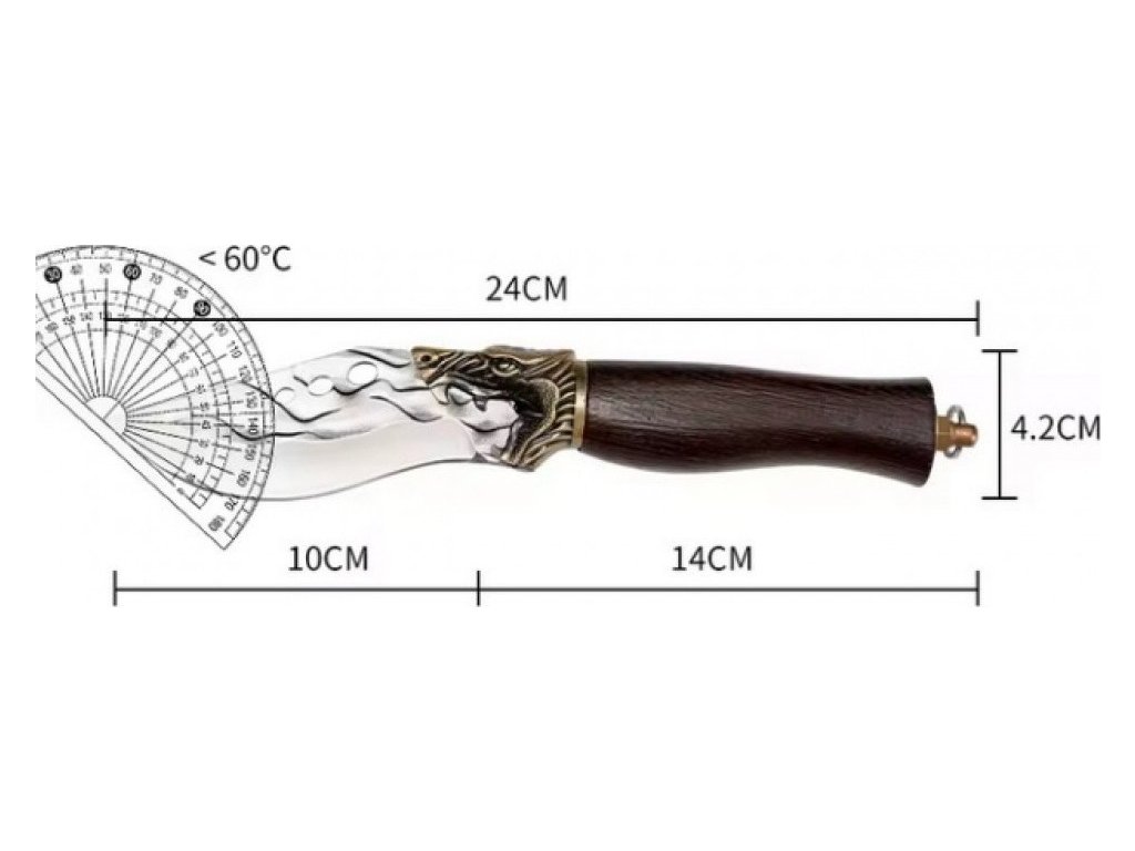 Čepel je vyrobená z vysoce kvalitní nerezové oceli a má charakteristický, ručně kovaný vzhled s texturou, díky tomu je odolná a má krásný vzhled. Navíc má zdobný zvířecí motiv na kořeni čepele.