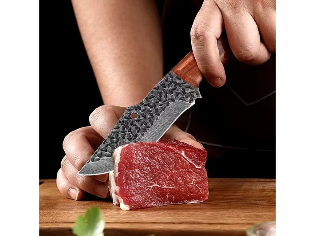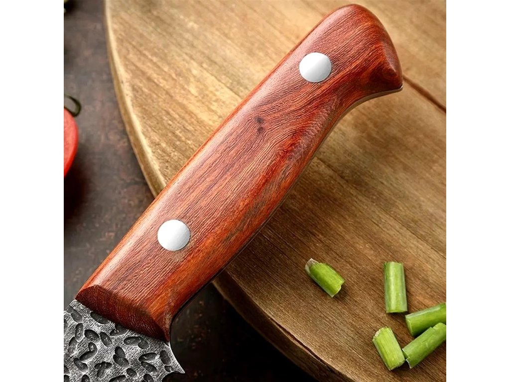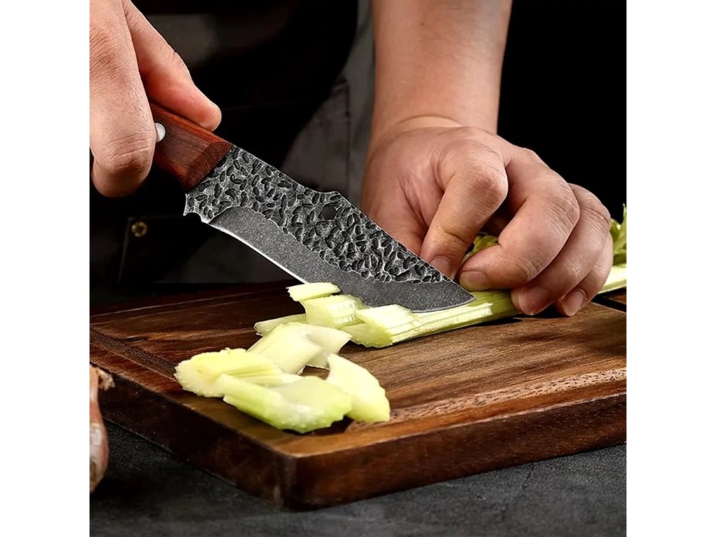 Čepel je vyrobená z vysoce kvalitní nerezové oceli a má charakteristický, ručně kovaný vzhled s texturou, díky tomu je odolná a má krásný vzhled. Navíc obsahuje všestranný otvor, který je ve skutečností uzavřený klíč M6 (6 mm).