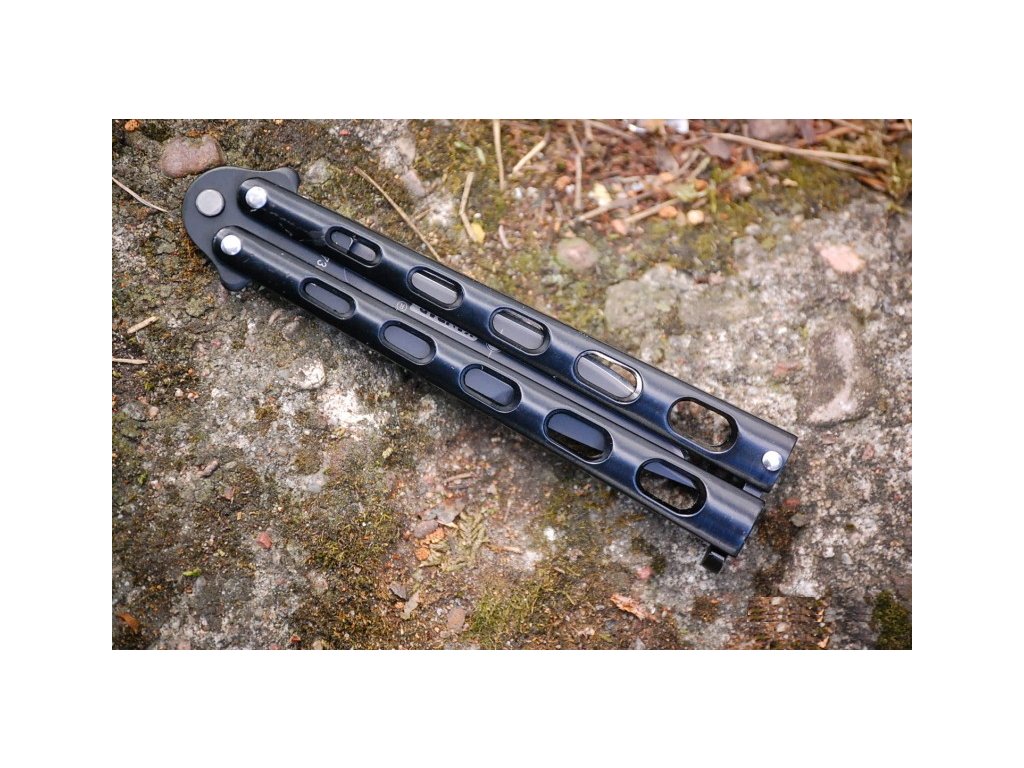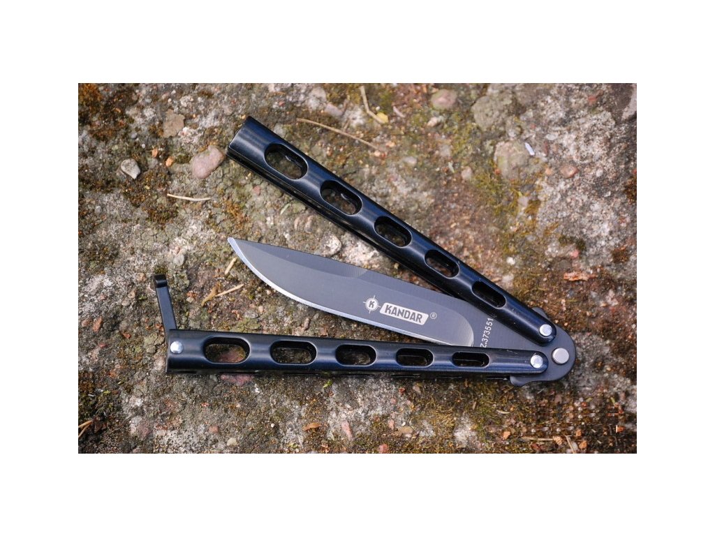 Nůž motýlek nýtovaný černý děrovaný Kandar N-133 Balisong