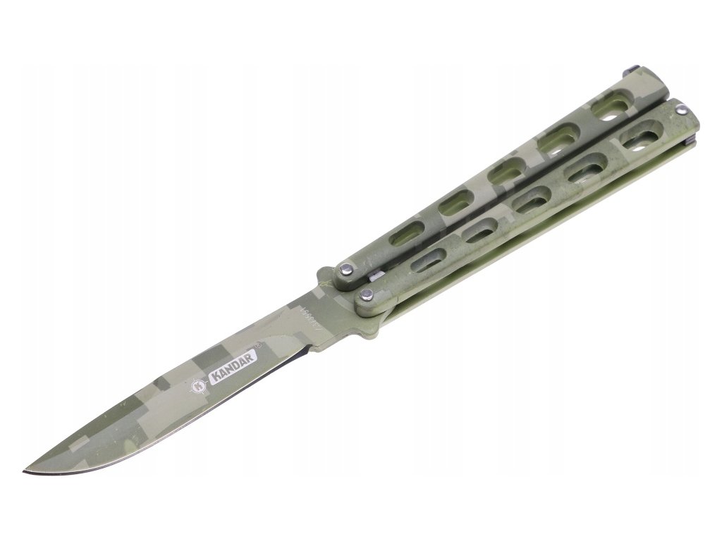 Nůž motýlek nýtovaný digital camo děrovaný Kandar N-332