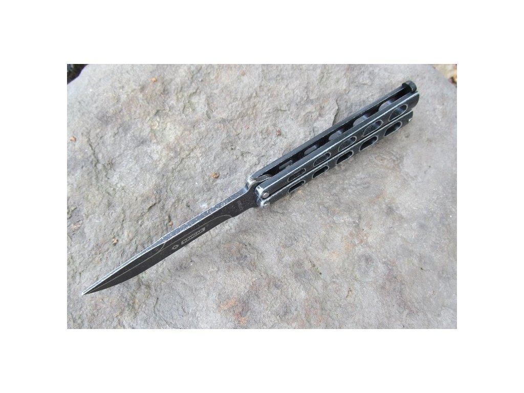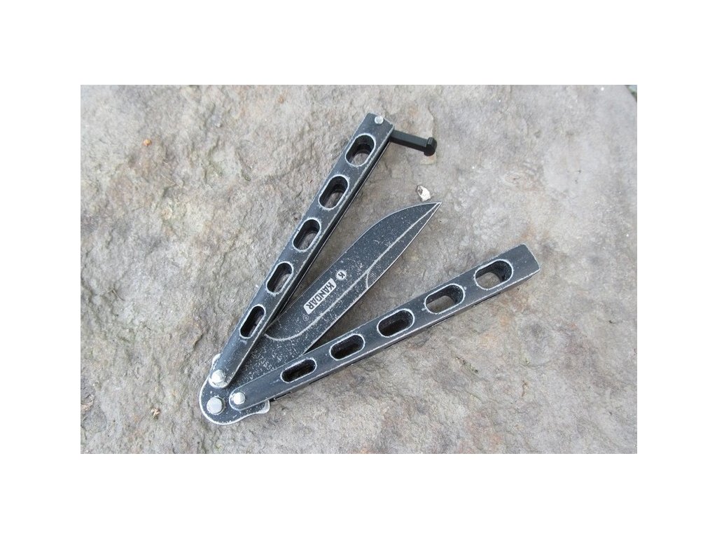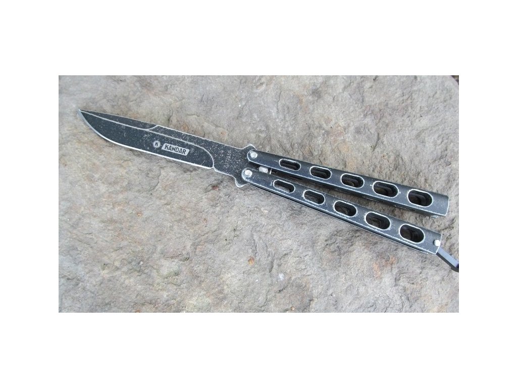 Nůž motýlek nýtovaný Stone Wash černý Kandar N-153