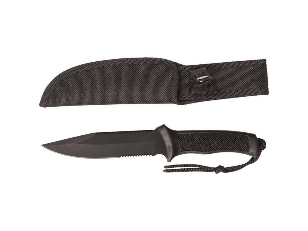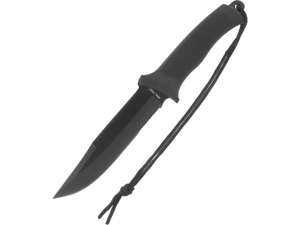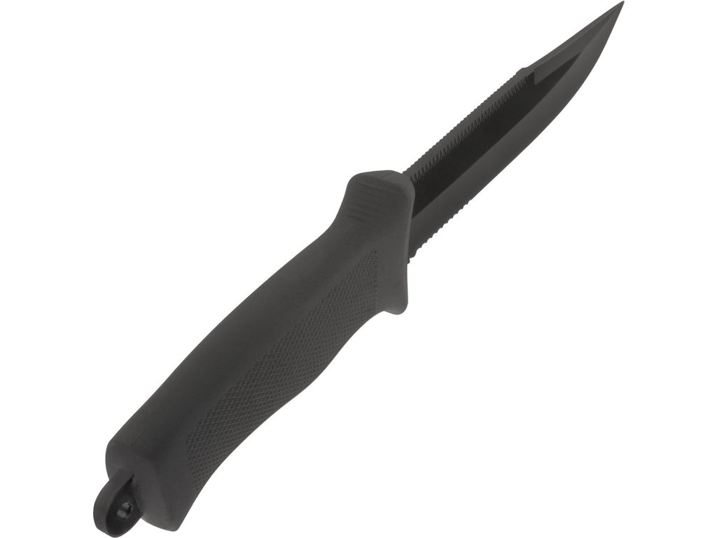 - BLACK COMBAT KNIFE WITH RUBBER HANDLE.