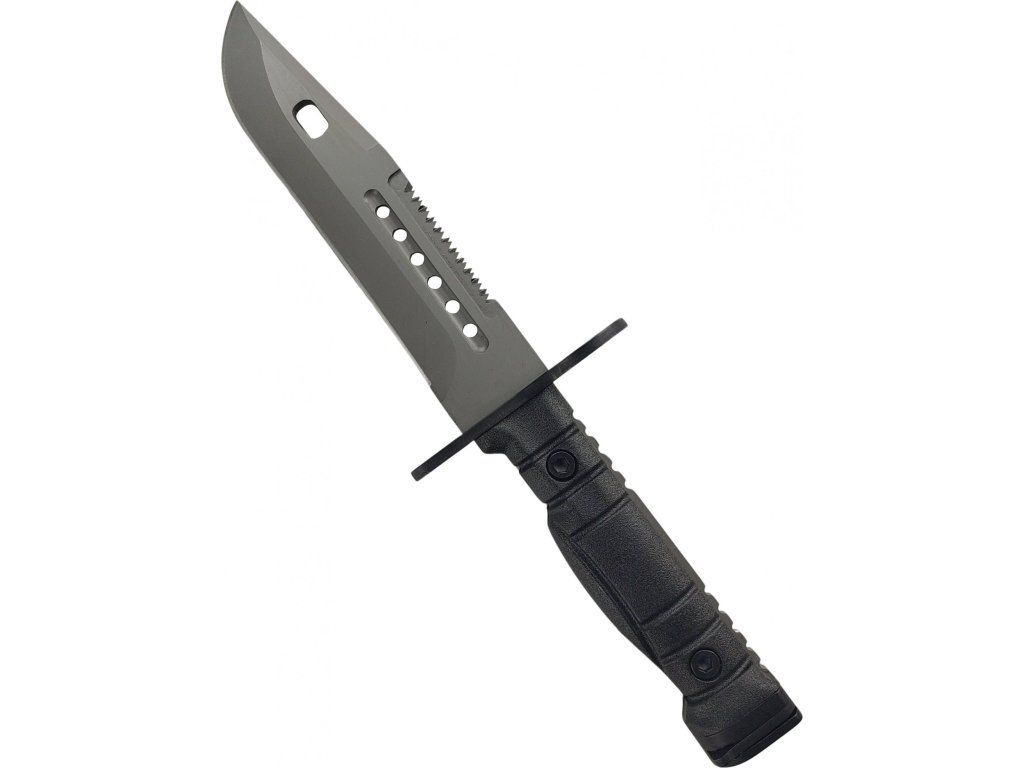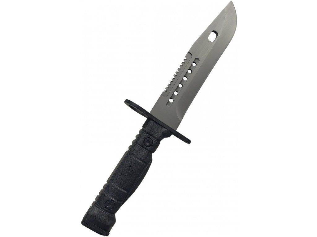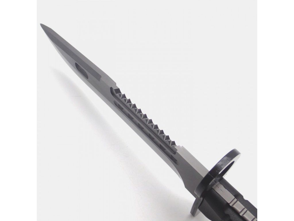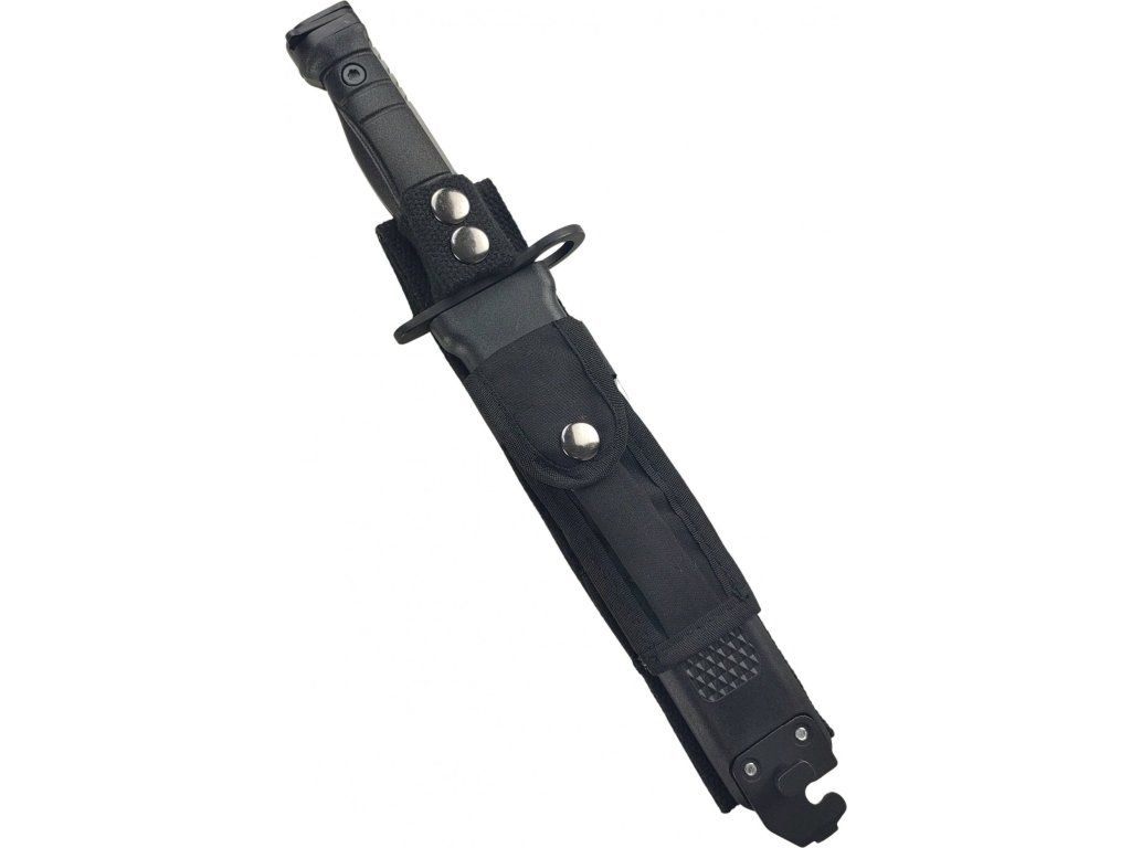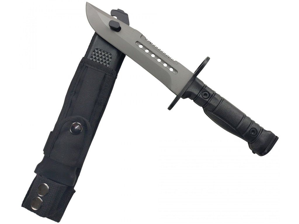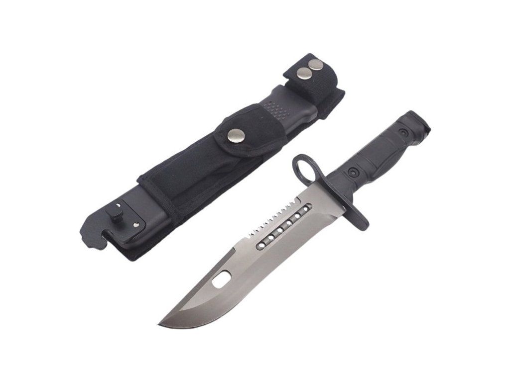 Outdoorový taktický nůž, inspirovaný vojenským bajonetem amerického typu M9. Nůž je pevné Full tang konstrukce, což zajišťuje jeho pevnost a spolehlivost. Čepel je z velice kvalitní nerezové oceli 7Cr17Mov s titanovou povrchovou úpravou, vysoce odolnou proti korozi s dlouhou životností. Hladká čepel s pilovým zoubkováním na hřbetu čepele. Ergonomicky tvarovaná hliníková rukojeť s protiskluzovým povrchem, zajišťující perfektní úchop a pevnost rukojeti. Špička rukojeti je opatřena mechanismem k uchycení na útočnou pušku. Nůž se dodává se speciálním pouzdrem na opasek, které obsahuje kleště na pletivový drát.