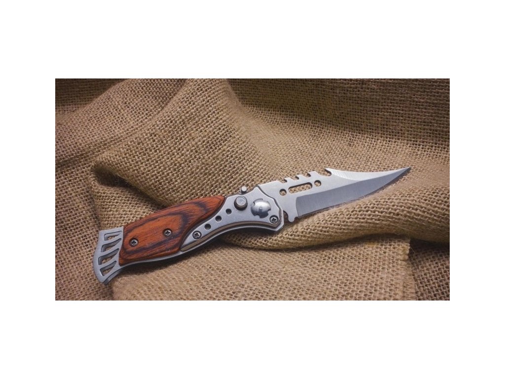 - Kapesní vystřelovací (automatický / pružinový) nůž s dřevěnou rukojetí.