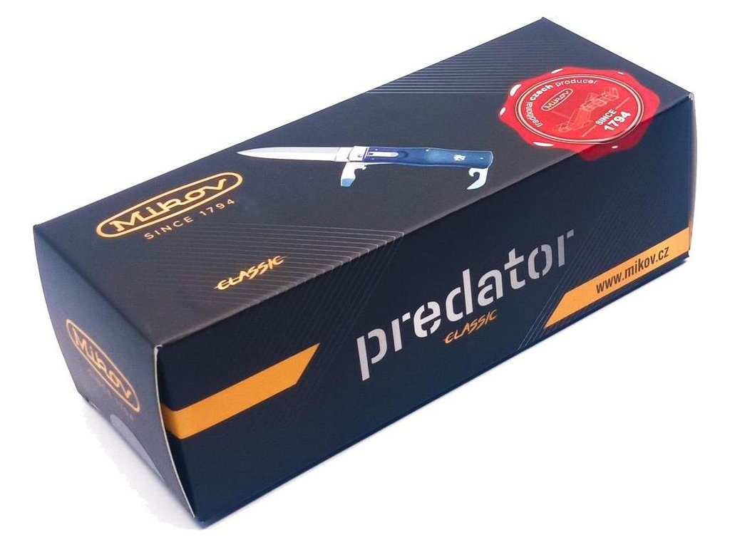 - Nůž PREDATOR je vyhazovací, automatický nůž firmy Mikov, která sídlí v srdci Českého Švýcarska ve městě Mikulášovice. Jednou z mnoha výhod nože PREDATOR je, že se nůž dá rychle otevřít jednou rukou.