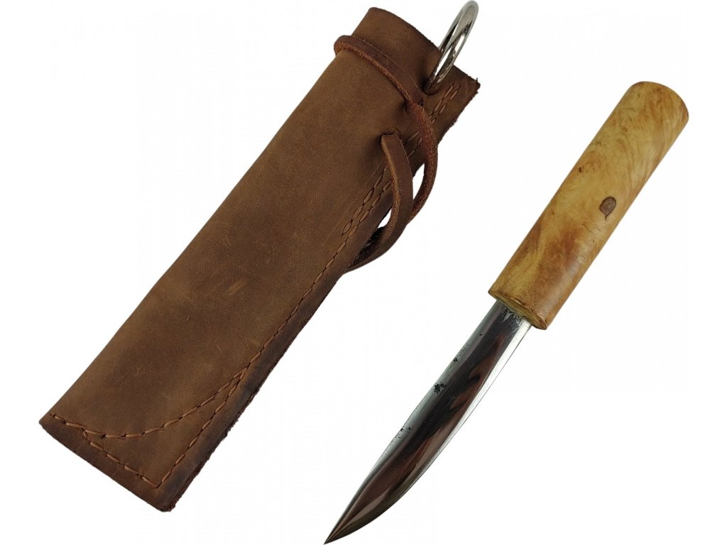 Neobvyklou vlastností jakutského nože je, že čepel je asymetrická; jedna strana čepele má plnější tvar, zatímco druhá strana nemá žádnou drážku. Čepel je tradičně kovaná z místní železné rudy tavené jakutskými kováři. Drážka v čepeli je lehčí a umožňuje kováři snížit množství kovu potřebného k výrobě větších nožů. Rukojeť nože je historicky vyrobena z břízy a je v průřezu tlustá a vejčitá. Hodí se do ruky a lze jej použít i v rukavicích. Bříza také chrání ruku před chladnými účinky nožové oceli v extrémním chladu, což je běžný stav na Sibiři během zimních měsíců. Pouzdro z pravé kůže. Berte prosím na vědomí, že tyto čepele a nože jsou vyráběny ručně.