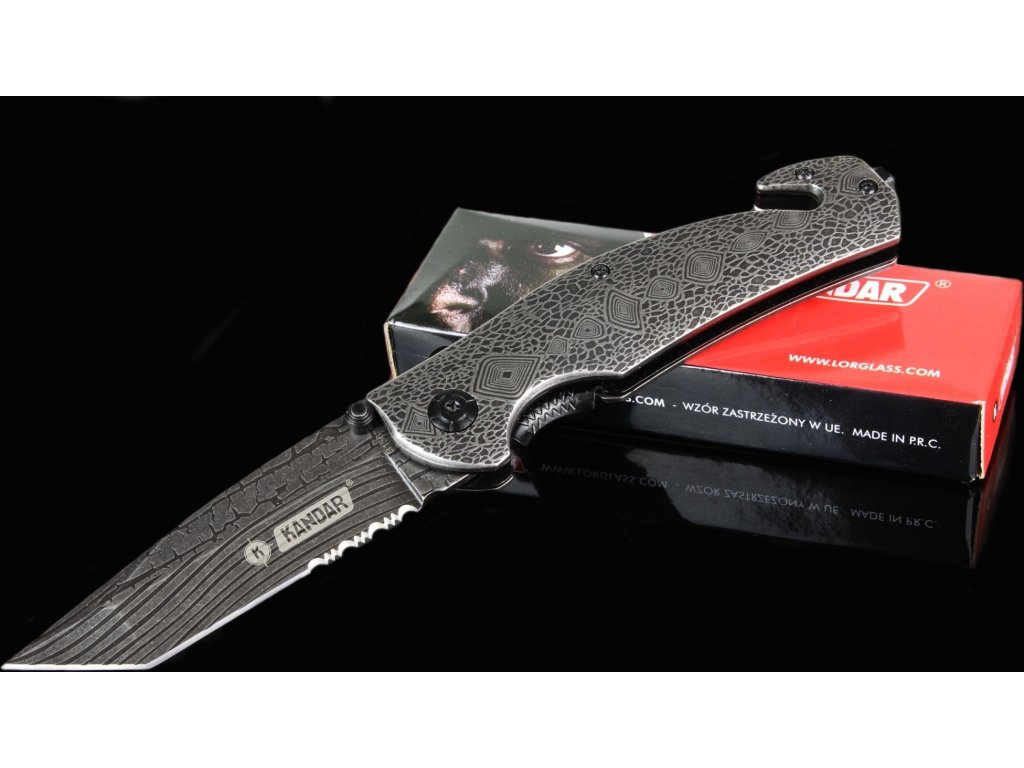 Agresivní profil čepele American Tanto, činí tento celokovový nůž perfektním pro řezání a propíchnutí i těch nejtvrdších materiálů. KANDAR® N-392A se osvědčí jednak jako spolehlivý záchranný nůž, protože je vybaven rozbíječem skla a čepelí pro řezání lan a pásů, stejně jako nástrojem EDC (Every Day Carry), tedy například nožem pro každodenní použití pro svou univerzálnost a relativně nízkou hmotnost. Kromě toho je vybaven ocelovou pružinovou sponou, která umožňuje připevnění k okraji kapsy nebo opasku pro bezpečné přenášení nože.