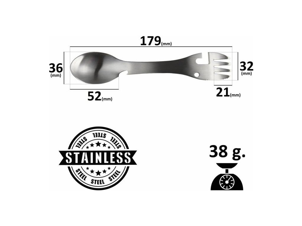- Multifunkční oboustranná kovová lžíce s vidličkou z nerezové oceli 420.