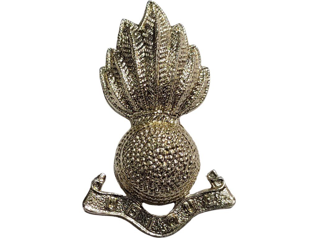 Originální límcový odznak britského Královského dělostřelectva (Royal Artillery) se symbolem hořící bomby s mottem "Ubique".