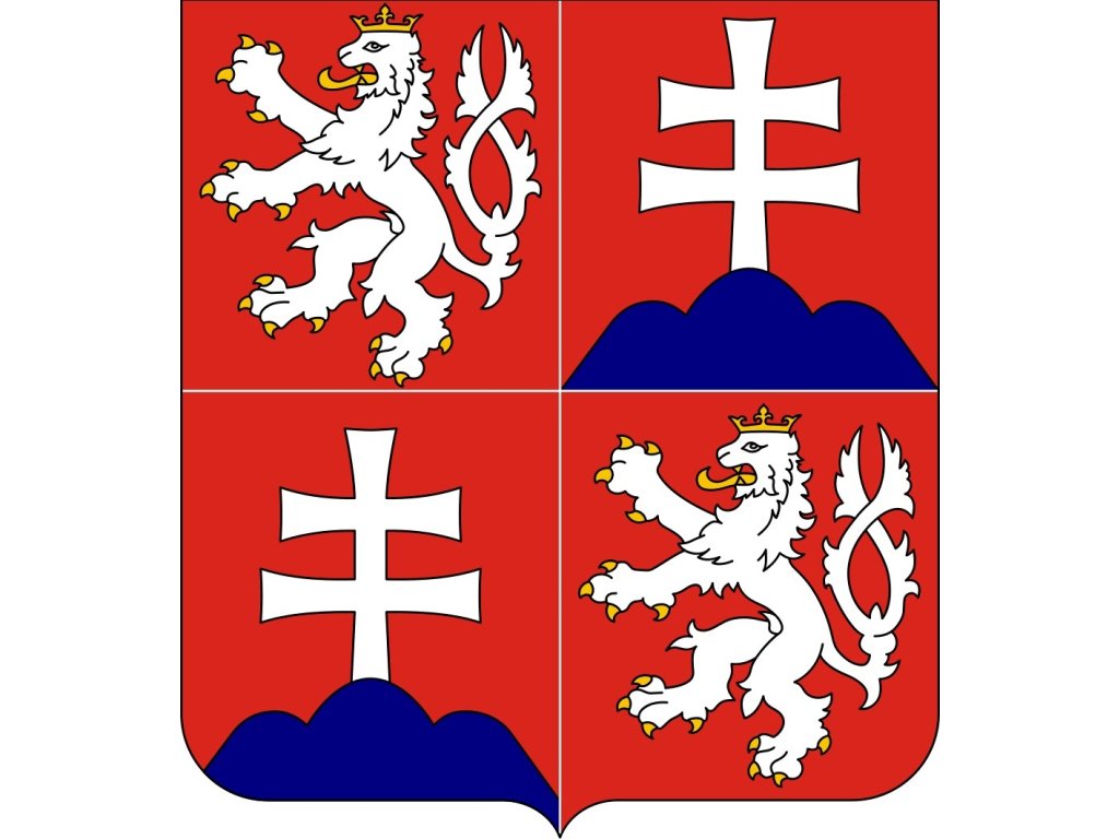 - Odznak zobrazuje čtvrcený štít se znaky Čech (lev) a Slovenska (dvojitý kříž).