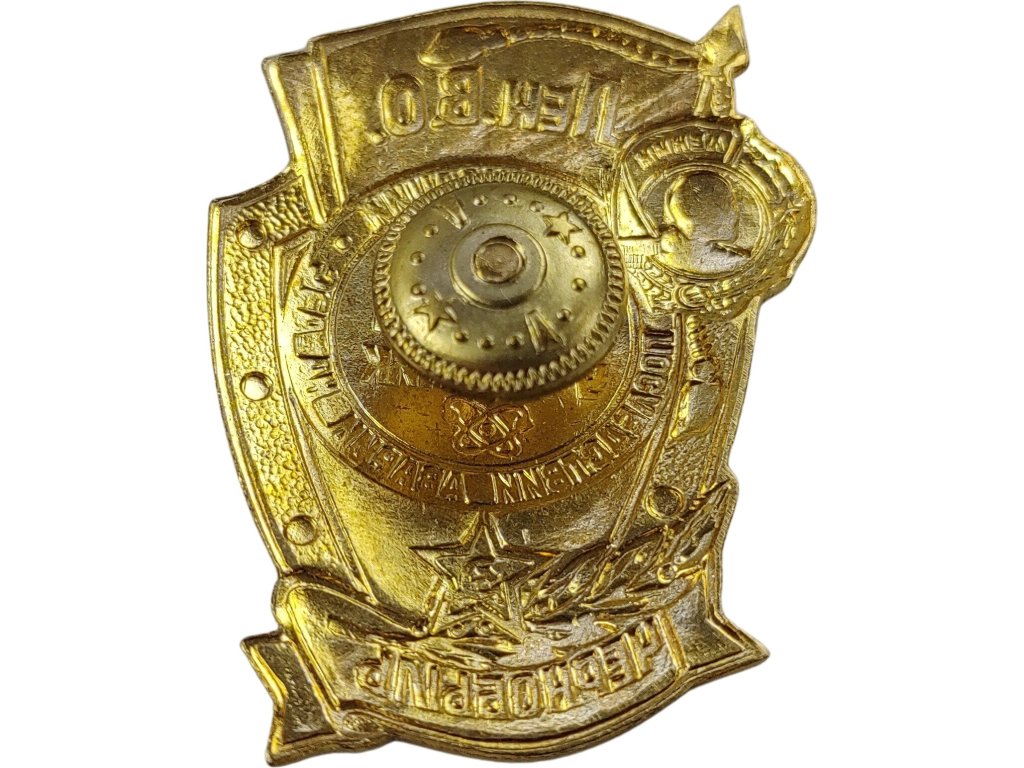 - Horní část: Obsahuje nápis „ЛЕН. В.О.“ (odkaz na Leningradský vojenský okruh) a menší kruhový medailon s portrétem Lenina (Vladimíra Iljiče Lenina).