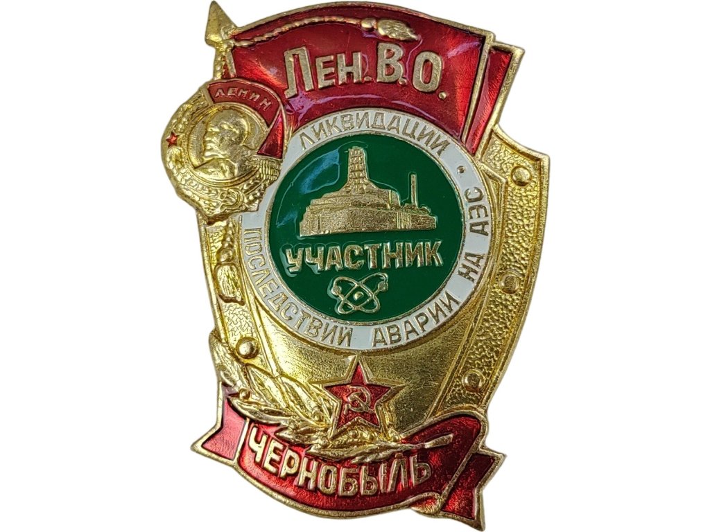 Odznak udělovaný lidem, kteří se přímo podíleli na odstraňování následků katastrofy v jaderné elektrárně v Černobylu, distribuovaný ještě před rozpadem Sovětského svazu.
