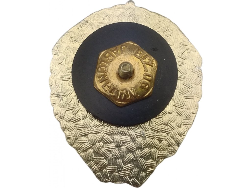 - odznak má na zadní straně šroubek a matičku pro připevnění k uniformě