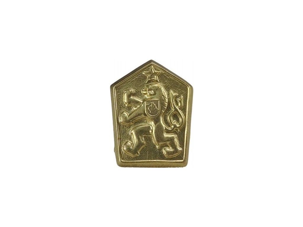 Mosazný čepicový odznak Československé lidové armády (ČSLA) se státním symbolem lva a hvězdou, známý také jako "KING".