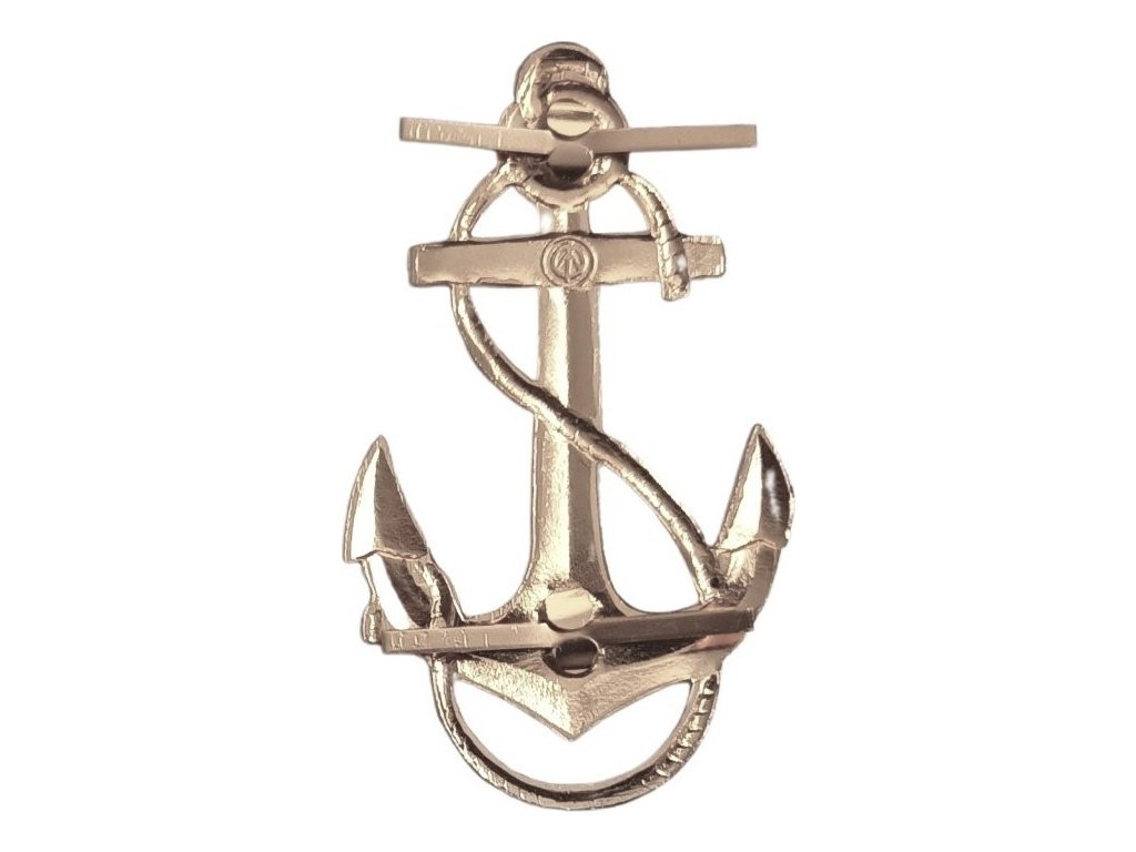 Originální námořní odznak z Ruska ve tvaru kotvy ve stříbrném provedení. Tento typ odznaku je tradičním symbolem námořnictva a byl používán na uniformách příslušníků ruských námořních sil. Jedná se o větší variantu odznaku, která vyniká svým výrazným a reprezentativním vzhledem.