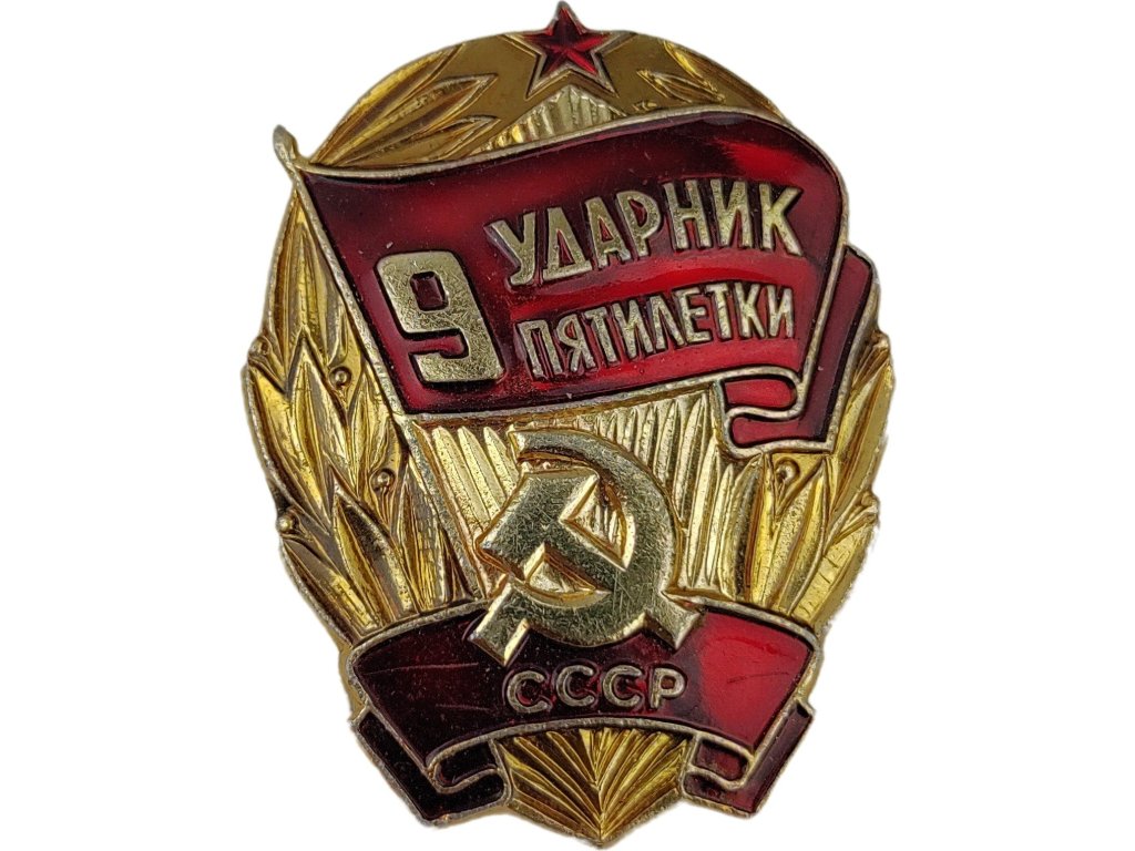 Sovětský odznak - Úderník 9. pětiletého plánu SSSR Rusko originální