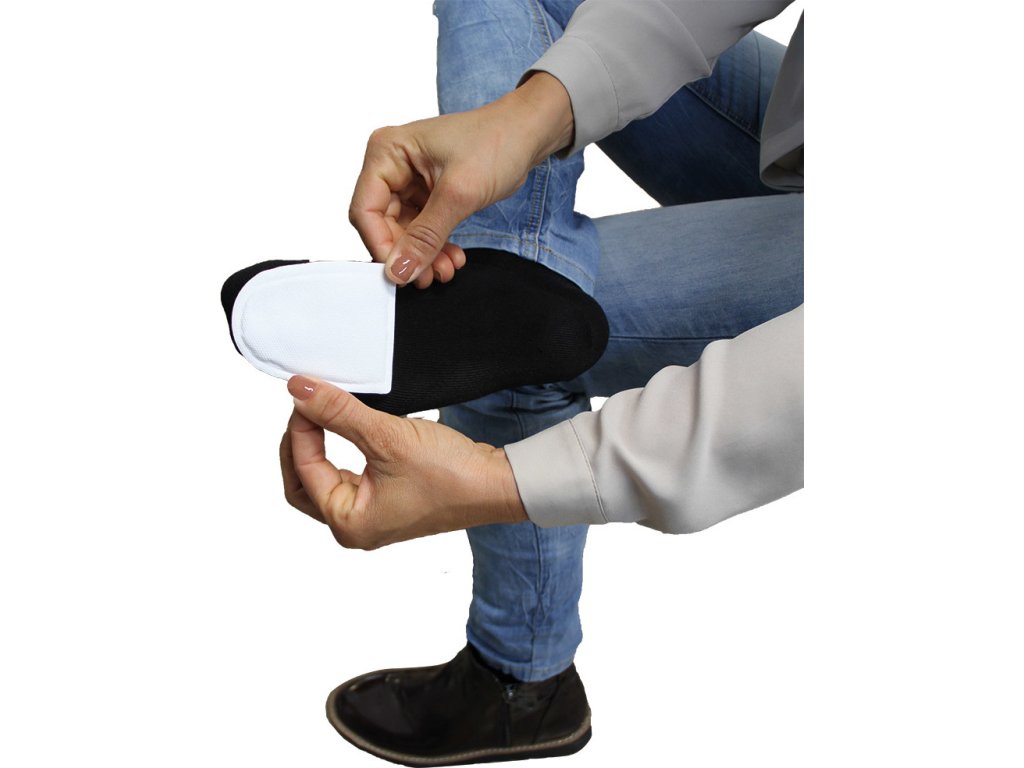 - Po otevření obalu je nutné nejprve z podložky odstranit ochrannou fólii. Ohřívač prstů je pak připevněn k ponožkám lepicí stranou shora nebo zdola. Nyní lze boty obouvat. Čím je chladněji, tím důležitější je mít dobře zateplené boty.