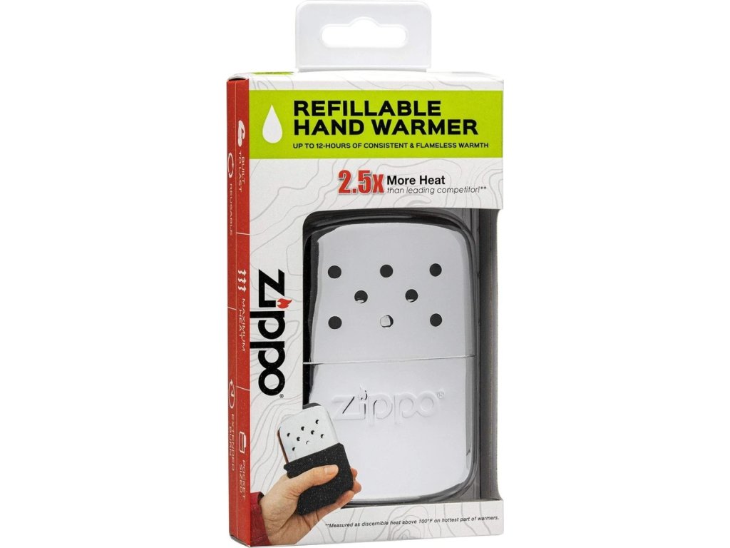Při pobytu venku se potřebujete soustředit. Ať už rybaříte, jste na čekané, kempujete nebo jste na zimáku s přáteli, určitě nechcete myslet na to, jak Vás zebou ruce. Nový a vylepšený způsob plnění ohřívačů rukou Vás udrží v teple. Stačí naplnit a nahřát plamínkem zapalovače. Hotovo! Až 12 hodin stabilního tepla pro Vaše ruce a prsty díky kapesnímu benzínovému ohřívači Zippo®.