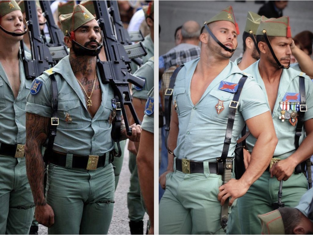 - masivní mosazná přezka 5,6 x 6,6 cm, s precizně zdobeným znakem / symbolem španělské armády