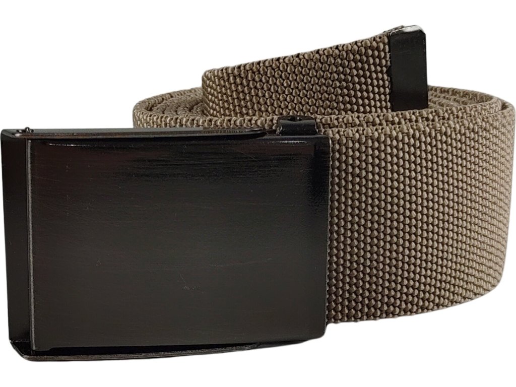- Elastic trouser belt, sand brown, with metal buckle and bottle opener.