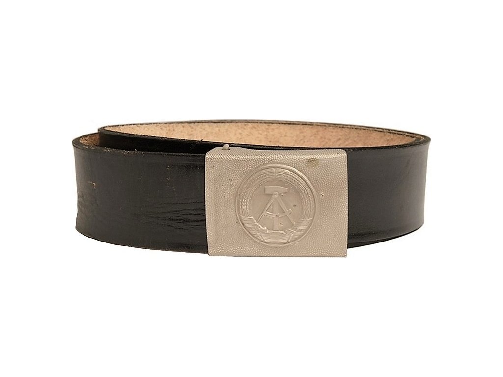 - Kovová přezka z lehkého hliníku, zdobená symbolem Nationale Volksarmee (Národní lidová armáda).