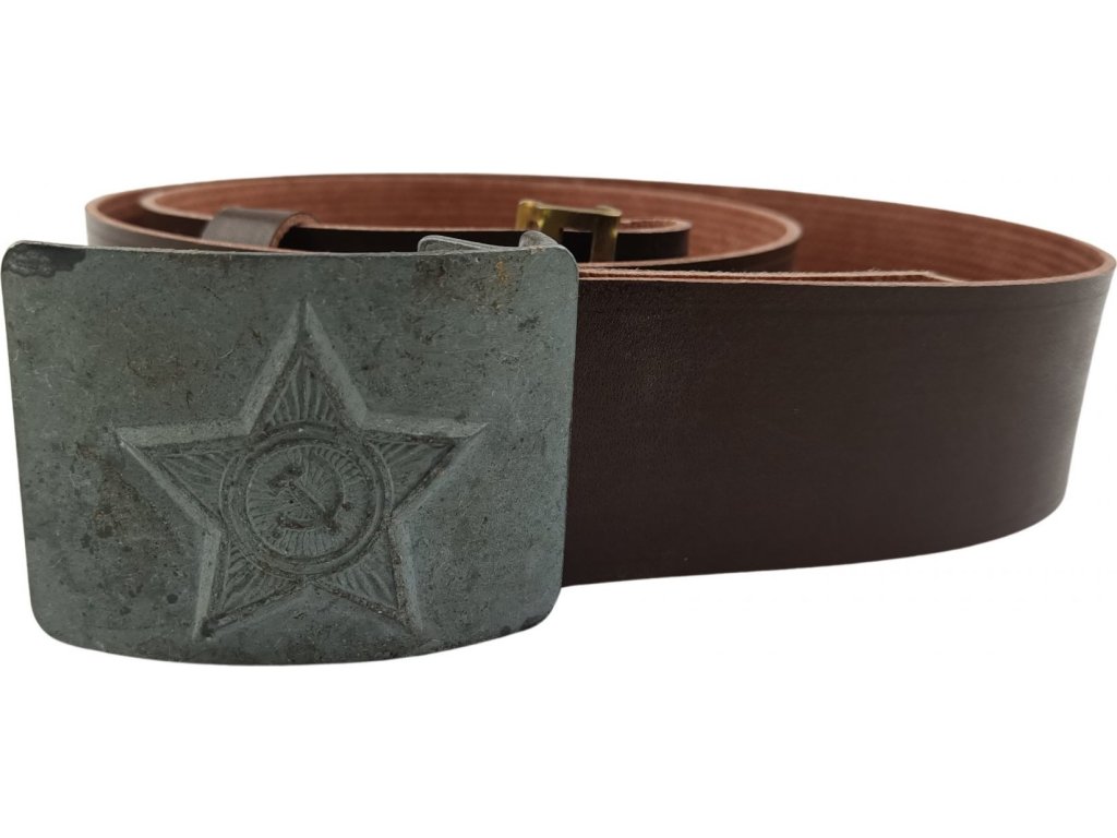 Opasek Rusko kožený hnědý šedá přezka originál