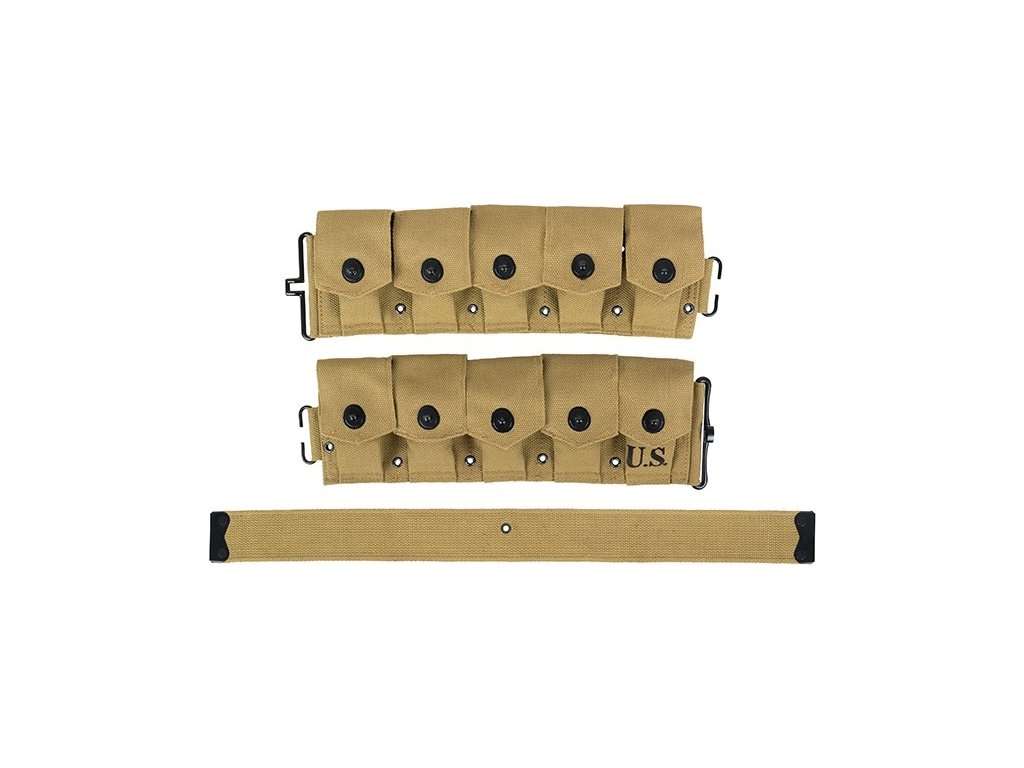 - US WWII Bar Belt Garant M1937 Rifle Magazine Field Belt Khaki Sand Reproduction for M1 Garand / M1 semi-automatic rifle.