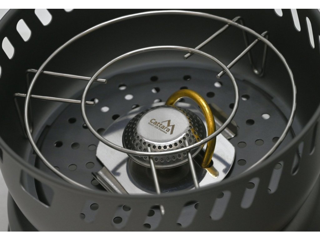 Vařič díky své složitelnosti zabírá jen velmi málo místa. Hořák v textilním pouzdře je spolu s příslušenstvím umístěn v sítěné tašce.