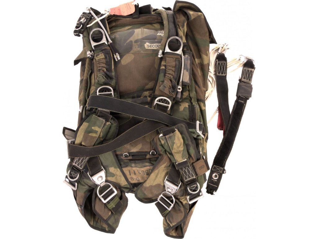 - Vak a padáky (hlavní a nouzové) v zadní části nylonového maskovaného batohu.