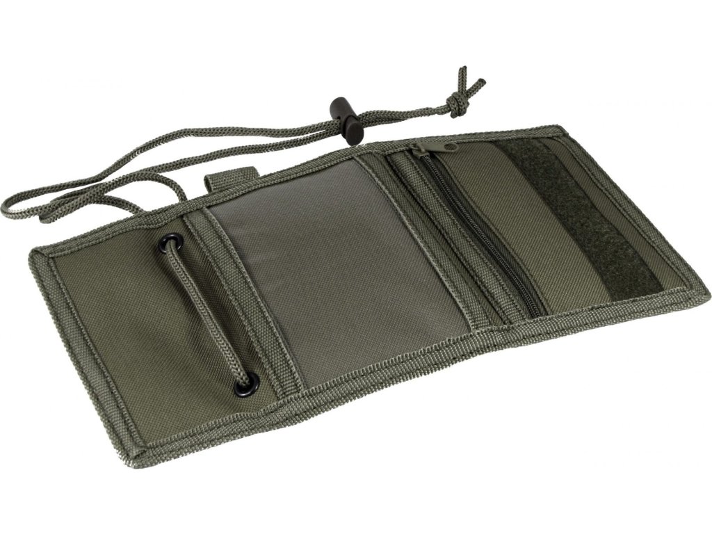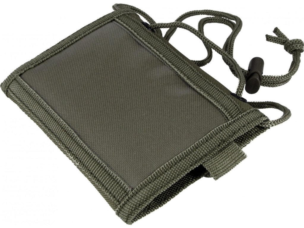 Peněženka se zapíná na pohodlný pásek na suchý zip. Má šňůrku se zátkou, díky které ji můžeme nosit na krku. Vnější kapsa na mince, uzavíratelná na zip, umožňuje rychlý přístup k drobným mincím. Identifikační okénko na občanský průkaz nebo občanku je ideálním řešením pro uniformované služby, turisty a lidi, kteří často používají doklady v práci.