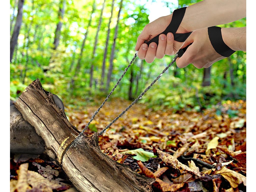 Ruční řetězová pilka, známá také jako kapesní řetězová pilka, je kompaktní a lehké nářadí určené pro ruční řezání dřeva. Je to užitečný nástroj pro outdoorové aktivity, jako je kempování, turistika, přežití v přírodě, a také pro drobné práce kolem domu a zahrady. Díky své kompaktní velikosti a lehkosti je snadno přenosná a skladovatelná, což ji činí ideální pro outdoorové použití.