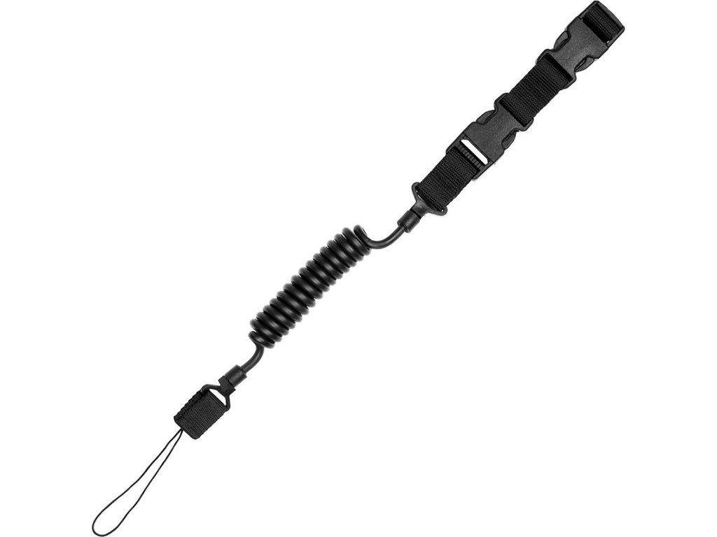 - Vlastnosti: Díky pružné (spirálové) konstrukci umožňuje šňůra pohodlnou manipulaci se zbraní a zároveň se neplete a drží tvar. Rychloupínací přezka umožňuje snadné a rychlé odepnutí zbraně od šňůry.