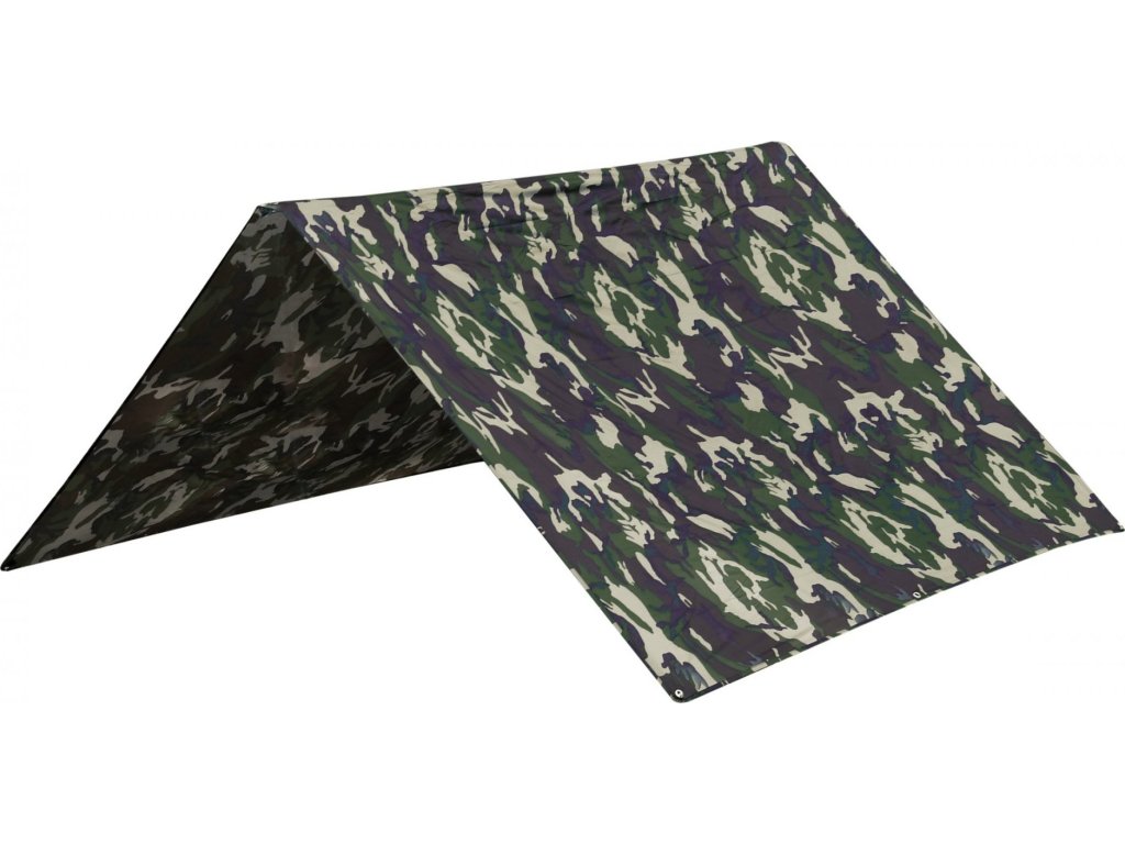 - Plachta je opatřena očky pro připevnění a vypnutí, plachtu tak lze (např. pomocí turistických hůlek) použít jako přístřešek, nebo závětří