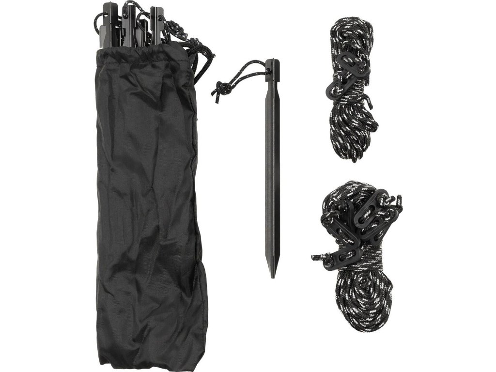 - Celkem 9 smyček s kovovými kroužky po obvodu, včetně 8 kolíků a 8 kotevních lan.