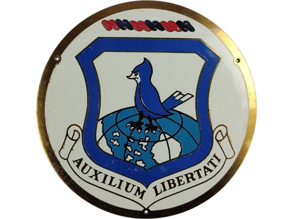 - Dárková plaketa kulatého tvaru, sloužící jako připomínka za službu na vojenské letecké základně.