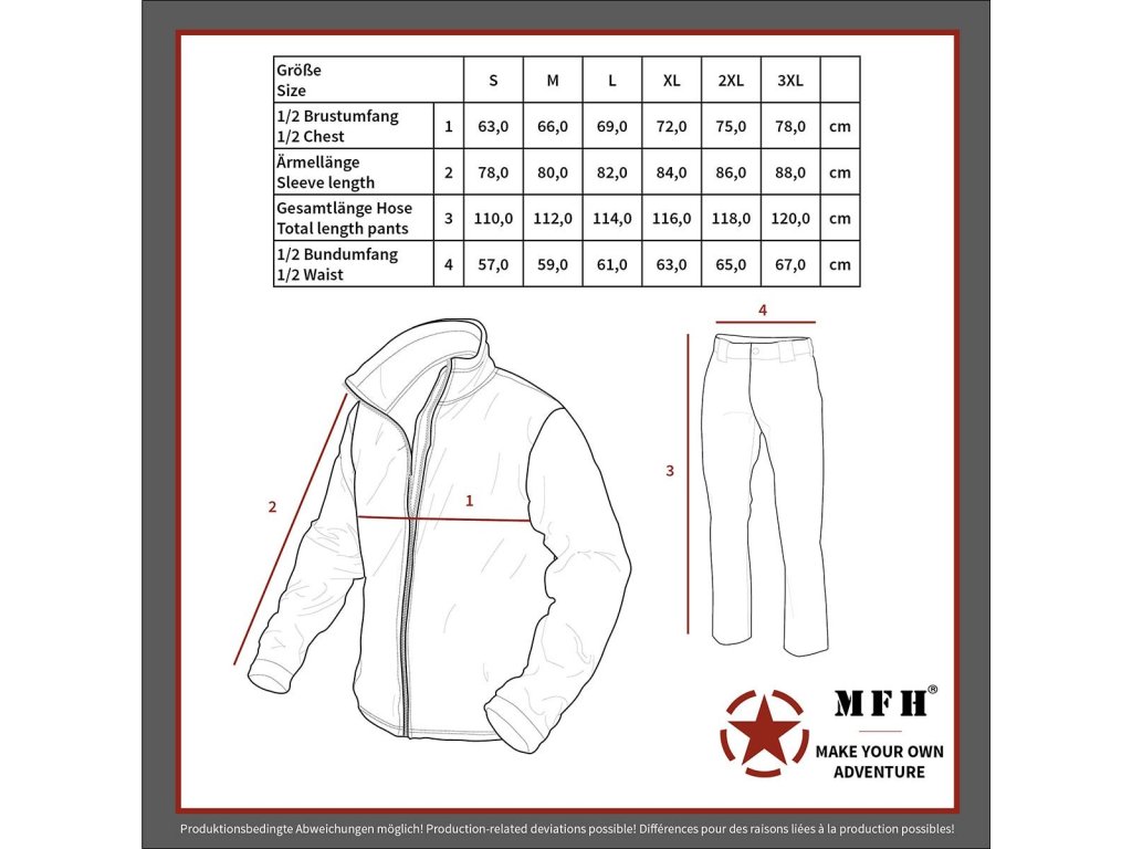 Jedná se o orientační míry oblečení, nikoliv těla![]() |