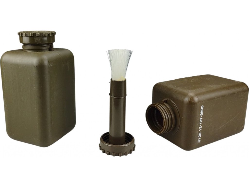 - Plastová olejnička s nanášecím štětečkem pro pravidelný servis a údržbu střelné zbraně německé armády Bundeswehr.