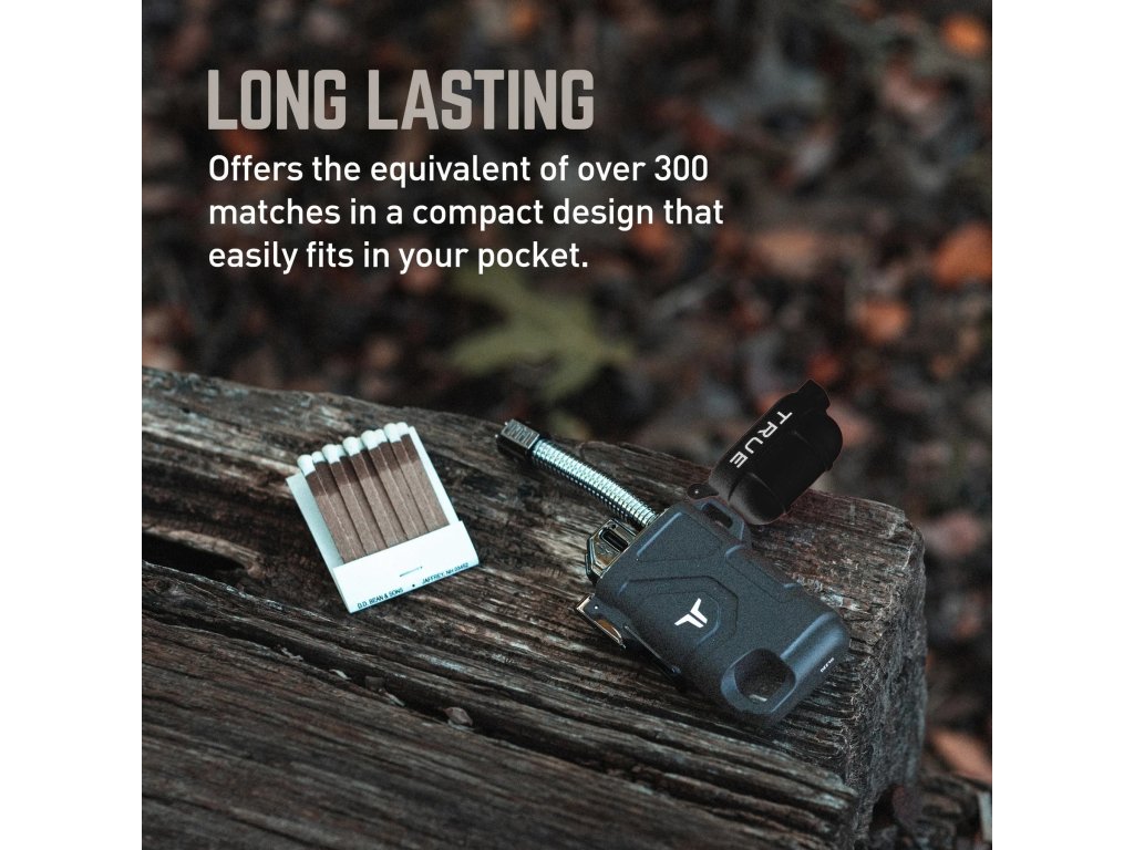 Technologie TRUE Plasma Lighter nové generace je bezplamenná, bez paliva, dobíjecí, lehká a snadno použitelná. Při plném nabití nabízí plazmový zapalovač ekvivalent více než 300 zápalek v kompaktním provedení, které se snadno vejde do kapsy. Jedinečný vysouvací flexibilní krk umožňuje bezpečnější použití při zapalování.